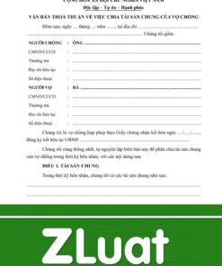 Xã hội ngày càng hiện đại, việc rõ ràng minh bạch trong việc phân chia tài sản chung của vợ chồng ngày càng được xem trọng. Phân chia tài sản chung của vợ chồng giúp cho các bên rõ ràng với nhau hơn, tránh xảy ra những tranh chấp pháp lý sau này, vì khi xảy ra tranh chấp nếu không có thoả thuận từ đầu sẽ rất khó giải quyết. Để bảo vệ quyền lợi cho Quý Khách hàng khi lập thoả thuận phân chia tài sản chung của vợ chồng, Zluat cung cấp Mẫu chuẩn văn bản phân chia tài sản chung của vợ chồng, kèm hướng dẫn chi tiết giúp các bên dễ ký kết, dễ thực hiện.