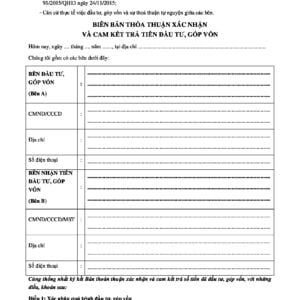 - Biên bản xác nhận và cam kết trả số tiền đầu tư, góp vốn.