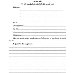 - Thông báo yêu cầu trả tiền đầu tư, góp vốn.