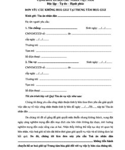 - 03 đơn từ chối hòa giải tại Trung tâm hòa giải, dùng để nộp kèm theo đơn ly hôn cho Tòa án. Giúp vụ việc không trải qua thủ tục hoà giải trước khi Toà án thụ lý.