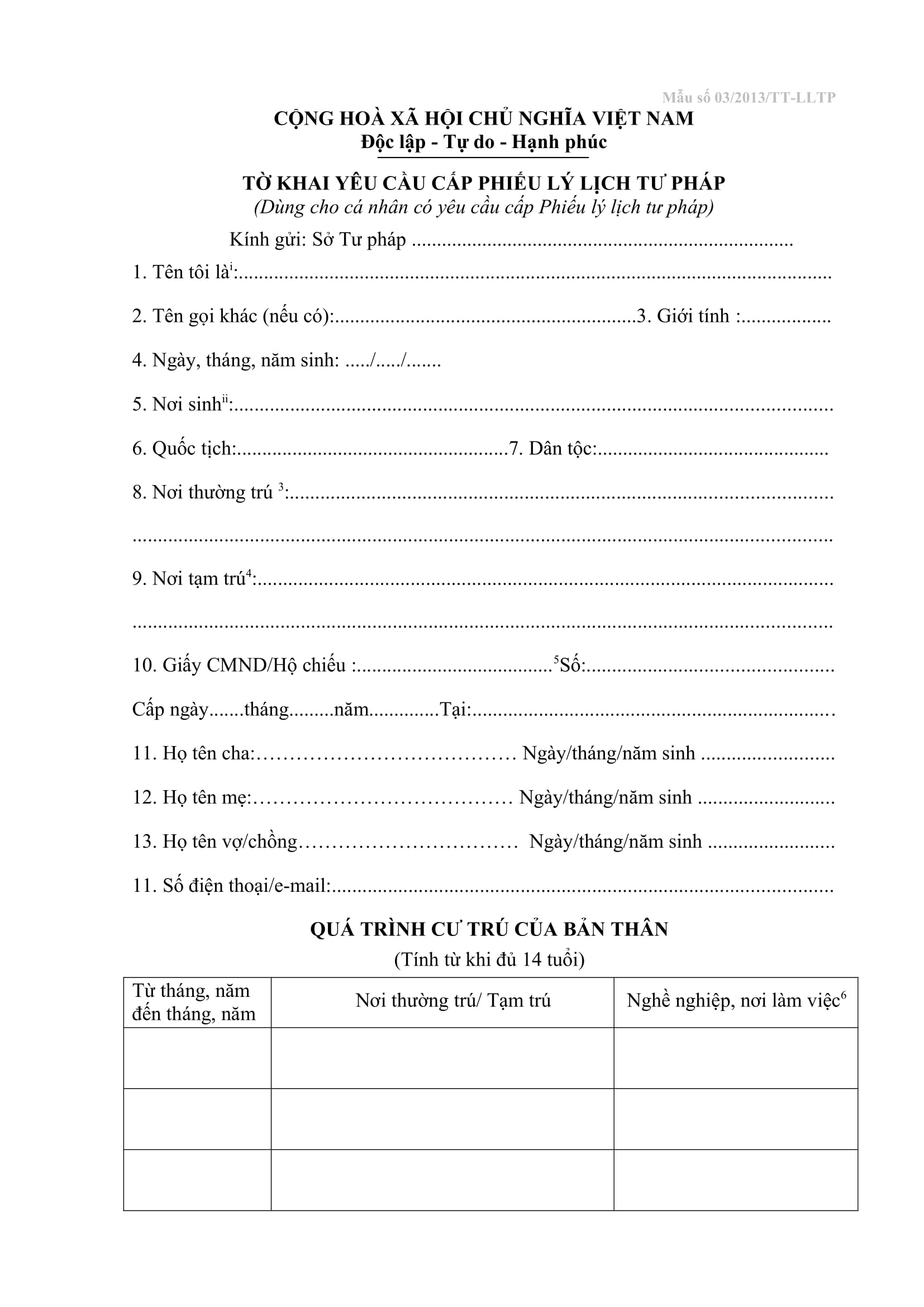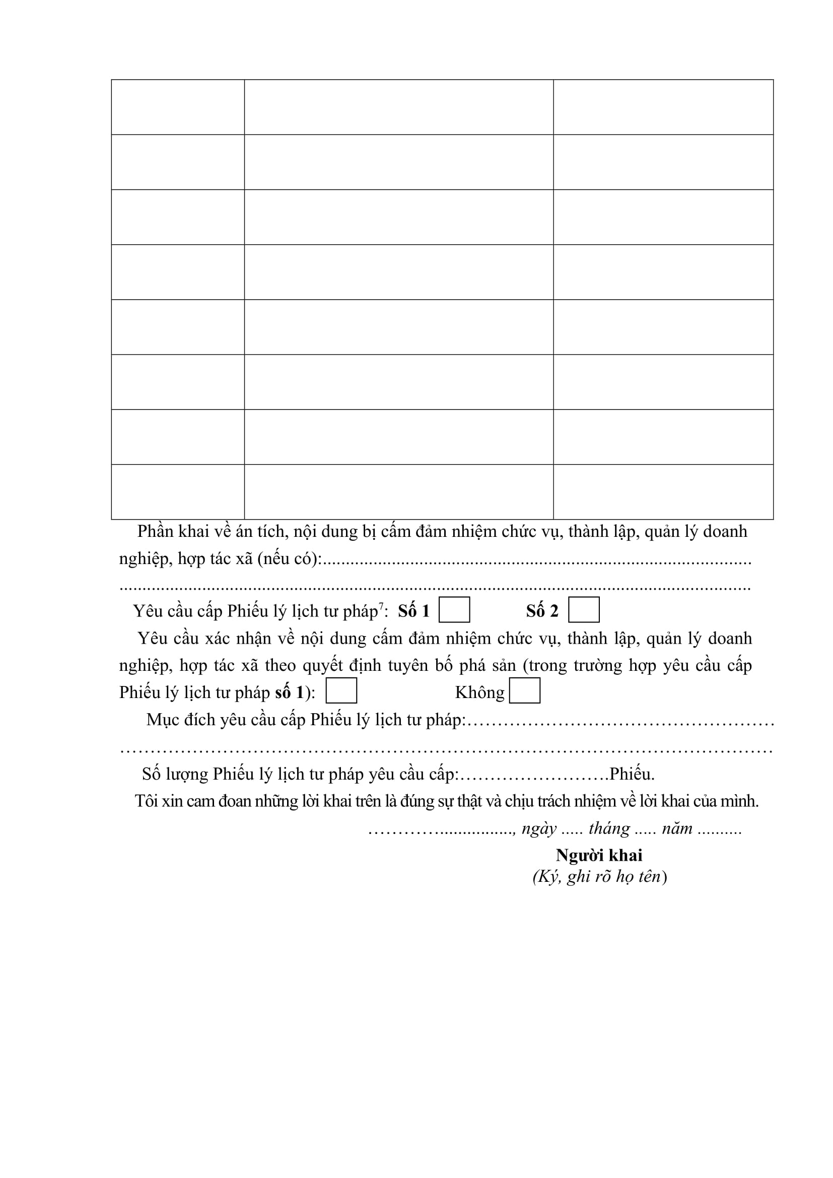 Bộ hồ sơ xin cấp lý lịch tư pháp