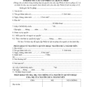 – Tờ khai yêu cầu cấp phiếu Lý lịch tư pháp