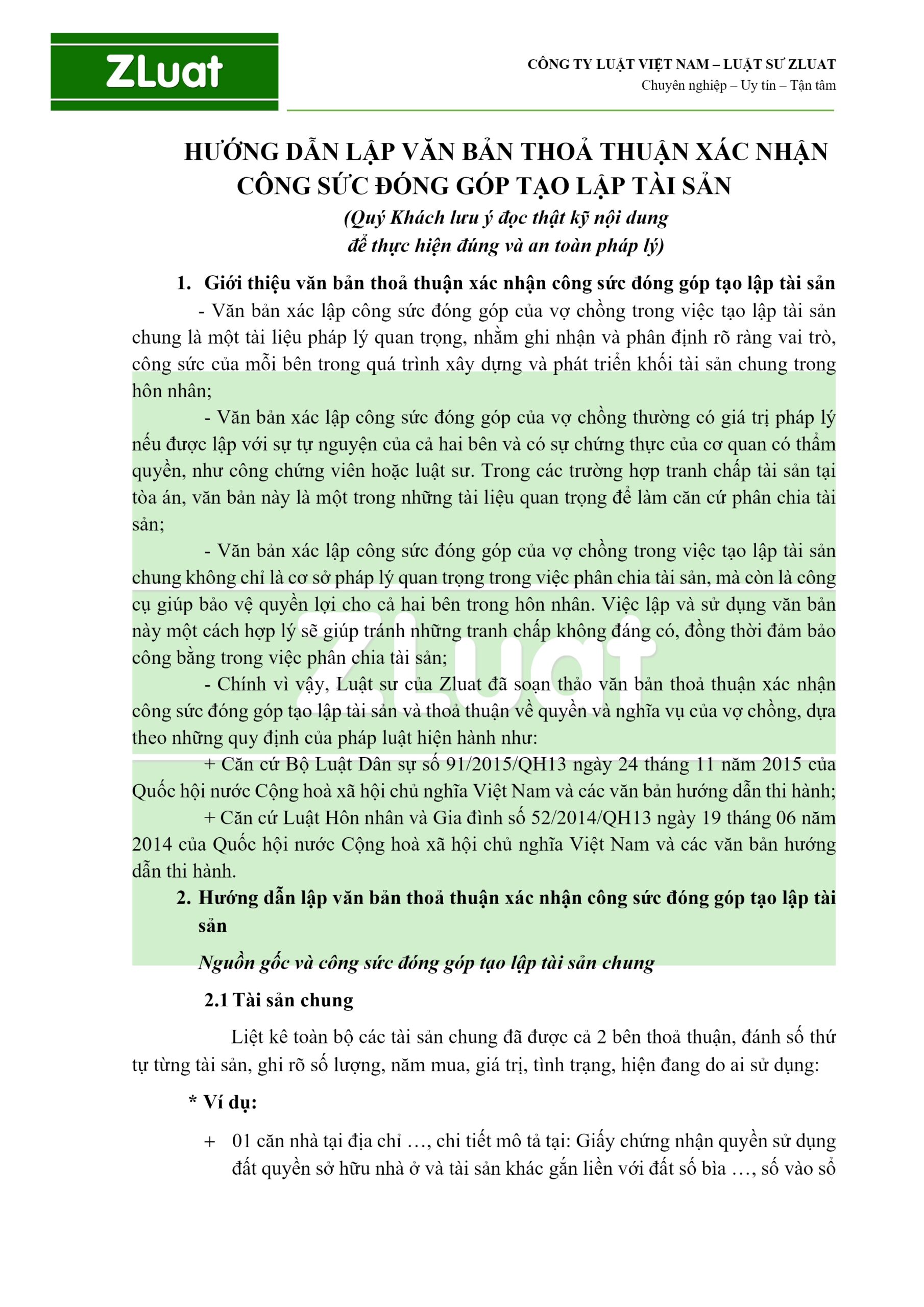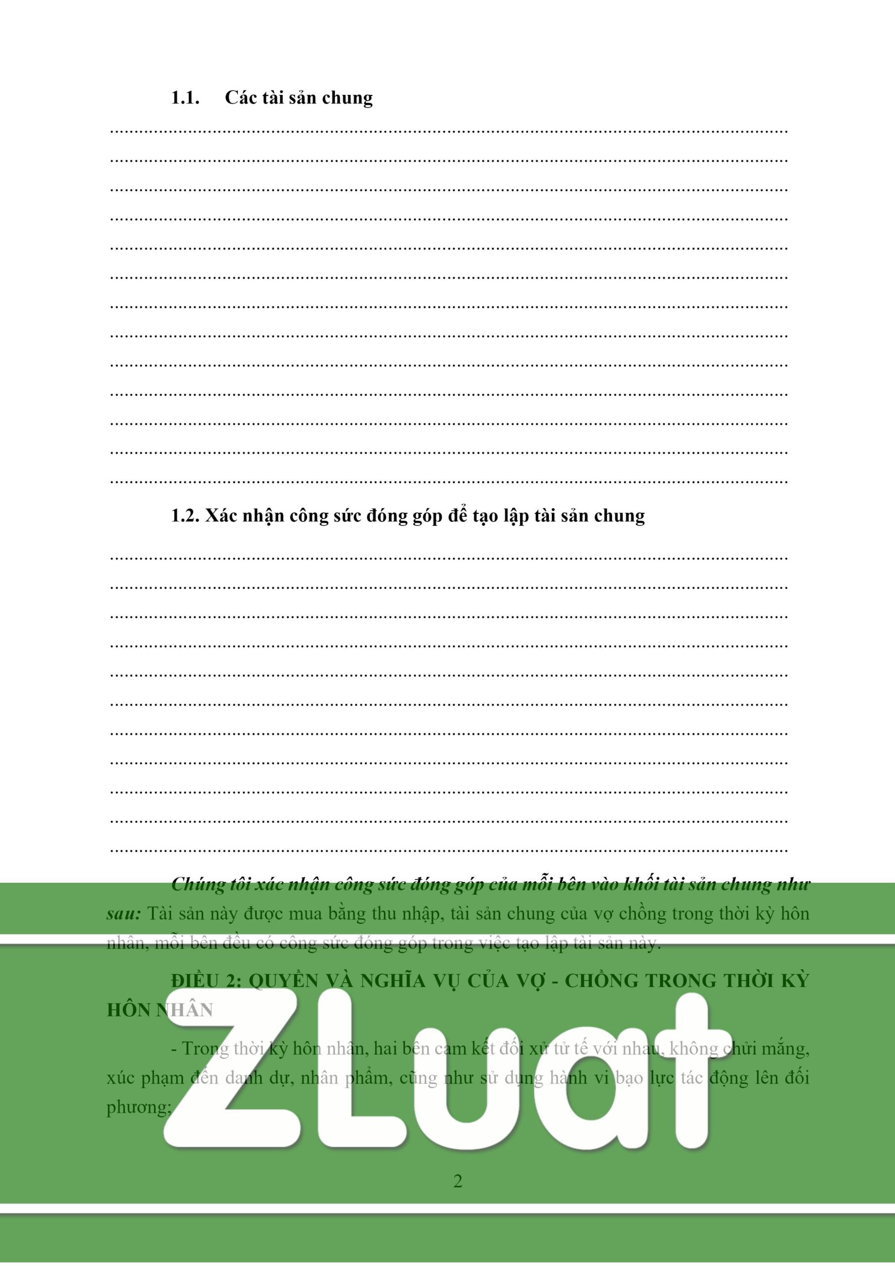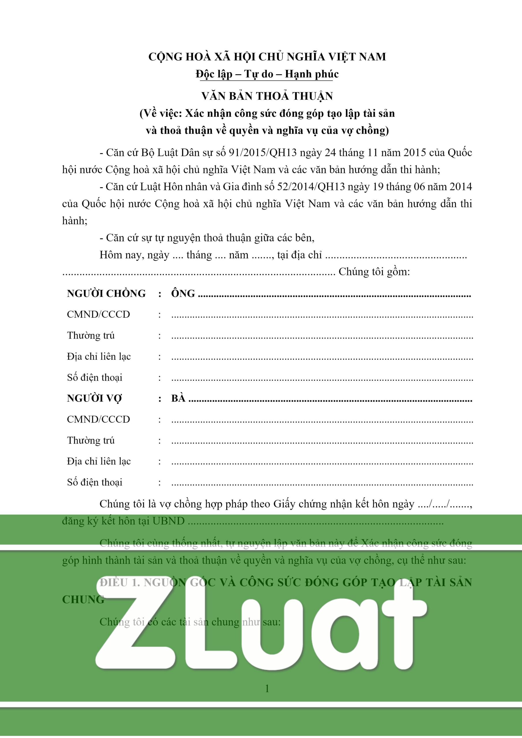 Đơn thỏa thuận xác lập công sức đóng góp tạo lập tài sản – Mẫu PDF mới nhất, chuẩn pháp lý