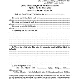 Mẫu Đơn Yêu Cầu Thi Hành Án kèm Hướng Dẫn Chi Tiết – Sản phẩm từ Luật sư ZLUAT