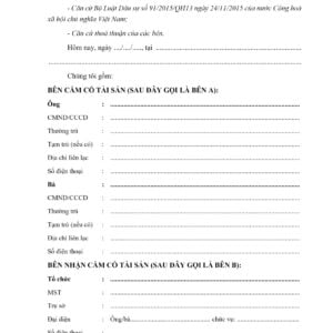 Mẫu hợp đồng cầm cố tài sản (cá nhân cho tổ chức: Doanh nghiệp, hộ kinh doanh cầm cố,…)