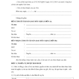 Bộ Hợp Đồng Cầm Cố Tài Sản (Tổ Chức Cho Tổ Chức) – Mẫu Chuẩn Pháp Lý từ ZLUAT