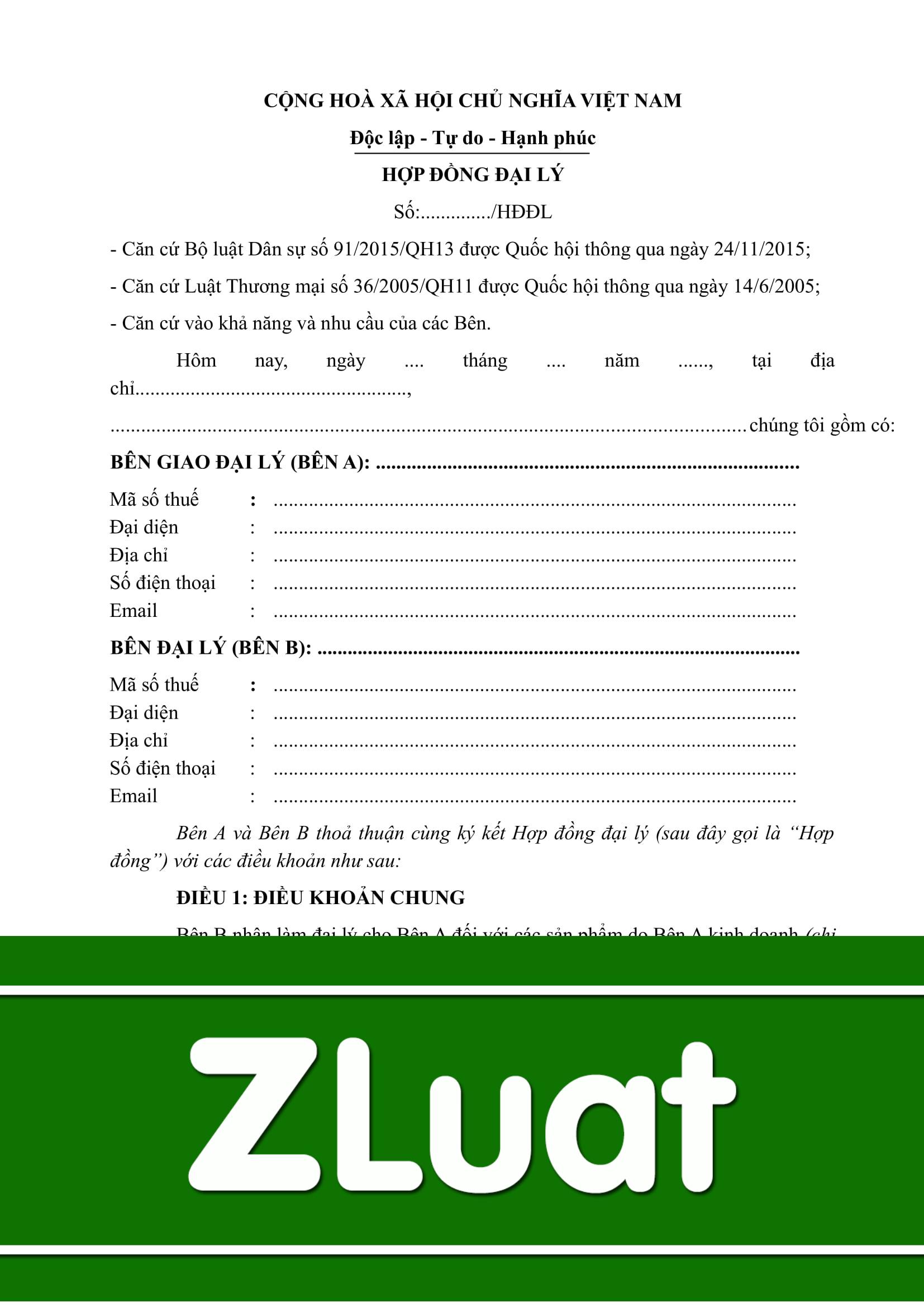 Bộ Hợp Đồng Đại Lý Mua Bán Hàng Hóa (Doanh Nghiệp – Doanh Nghiệp) – Mẫu Chuẩn Pháp Lý từ ZLUAT