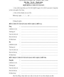 Mẫu hợp đồng cầm cố tài sản (cá nhân cho cá nhân)