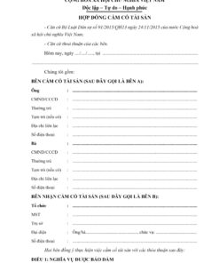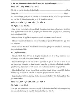 Mẫu hợp đồng cầm cố tài sản (cá nhân cho tổ chức: Doanh nghiệp, hộ kinh doanh cầm cố,…)